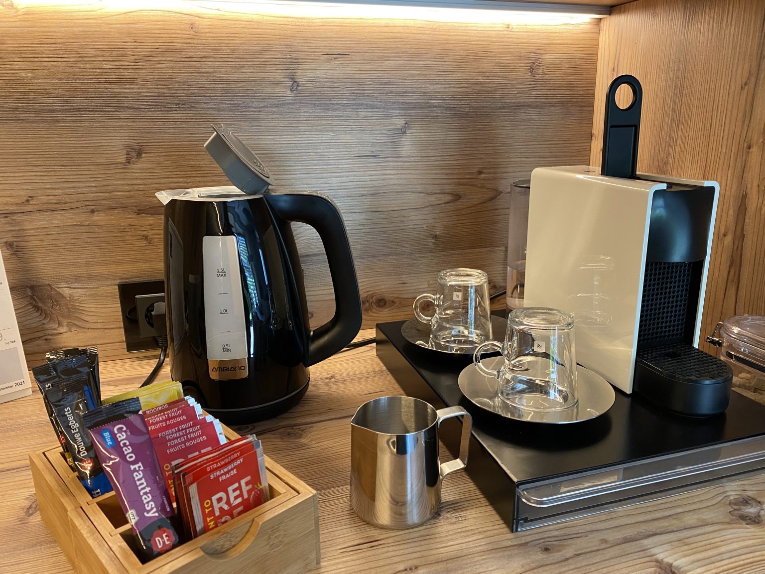 Für Kaffee- und Teeliebhaber: Kaffeemaschine inkl. ein paar Kapseln vor Ort, sowie ein Wasserkocher